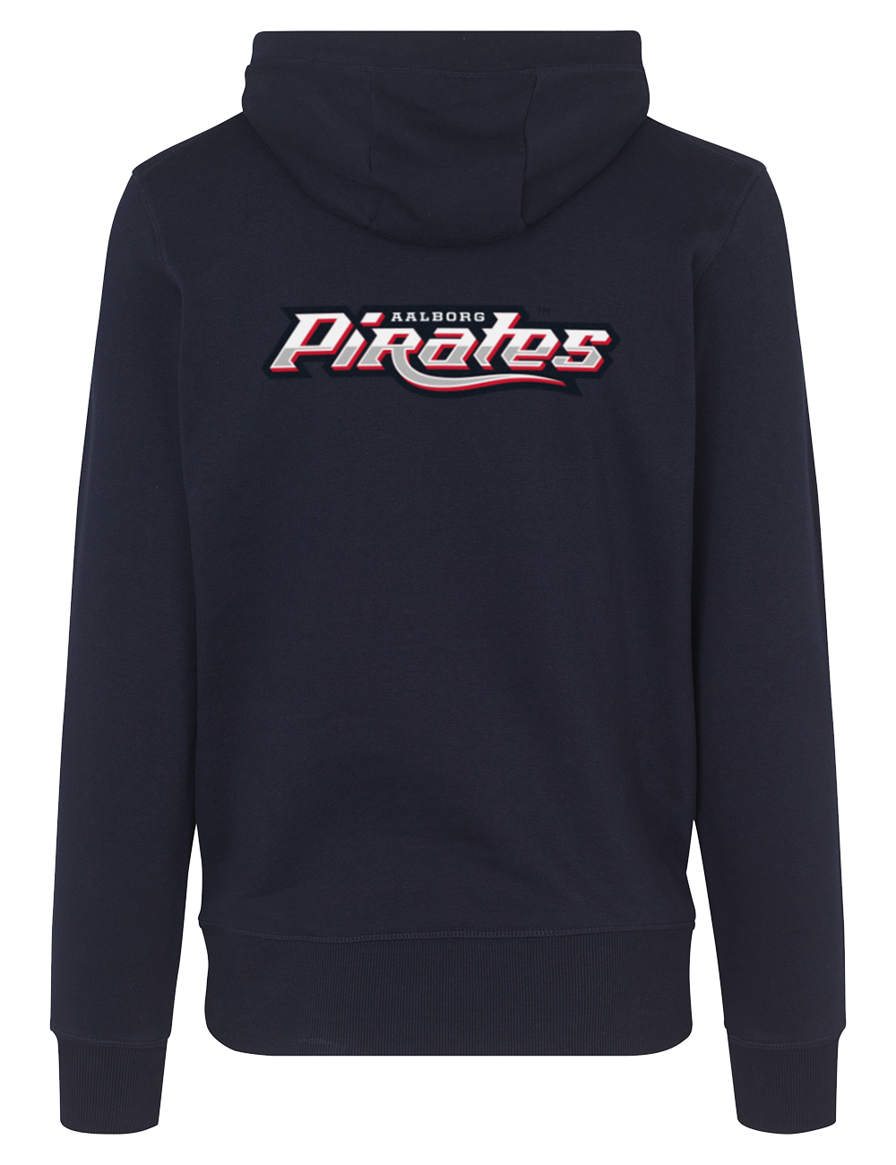 Dette er en klassisk hoodie med kængurulomme på fronten, hætte med snøretræk og rib ved ærmerne. Indersiden er børstet, hvilket gør hoodien ekstra behagelig og blød. Den er designet med det originale Aalborg Pirates logo på fronten, og logo på ryggen i Aalborg Pirates klubfarver. Brug hoodien når du skal til kamp, eller til hverdag, når du har brug for en varm trøje.