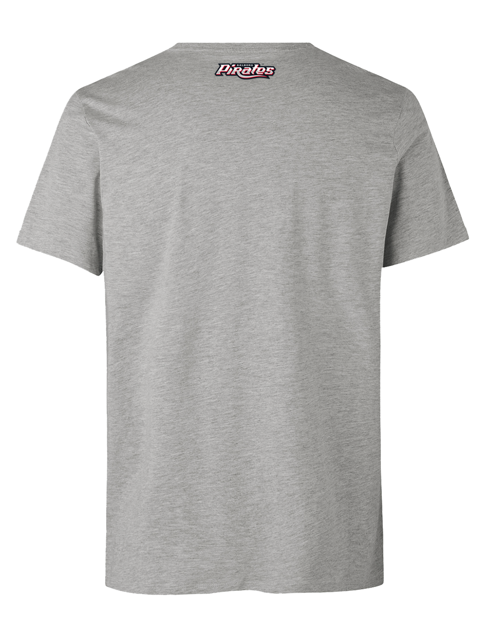 Dette er en klassisk t-shirt med almindelig pasform og er lavet af en blanding af bomuld og viskose, som er yderst behageligt. Trøjen er designet med det originale Aalborg Pirates logo med Kaptajn Ding Dong på forsiden og logo i nakken, så man ikke er i tvivl om, hvilket hold man støtter.