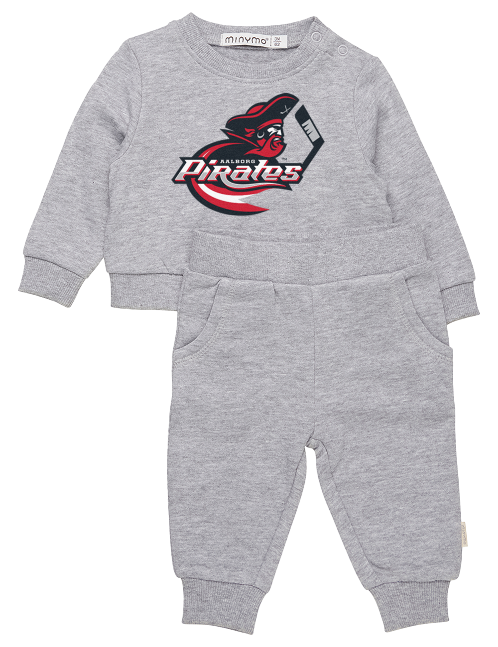 Dette sweatsæt til de små består af en trøje og et par bukser. På trøjen ses Aalborg Pirates mascot, Kaptajn Ding Dong, så nu kan de helt små Aalborg Pirates også være med til at vise deres støtte til klubben.