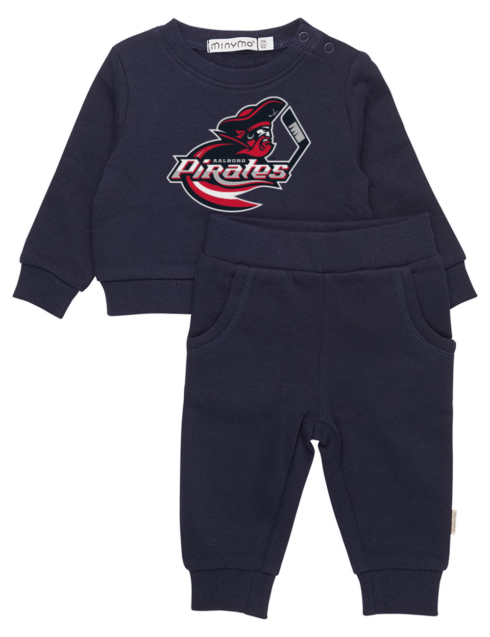 Dette sweatsæt til de små består af en trøje og et par bukser. På trøjen ses Aalborg Pirates mascot, Kaptajn Ding Dong, så nu kan de helt små Aalborg Pirates også være med til at vise deres støtte til klubben.