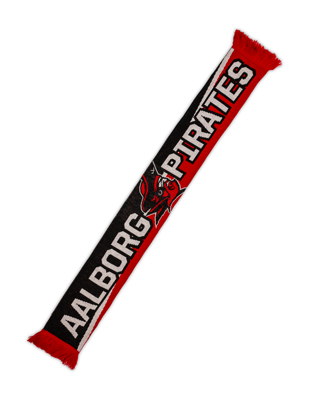 Støt drengene når de træder ind på isen i kampen om at sejre. Dette halstørklæde er designet i de klassiske Aalborg Pirates farver, sort og rød, og med kaptajn Ding Dong i midten. Et musthave for enhver pirat.