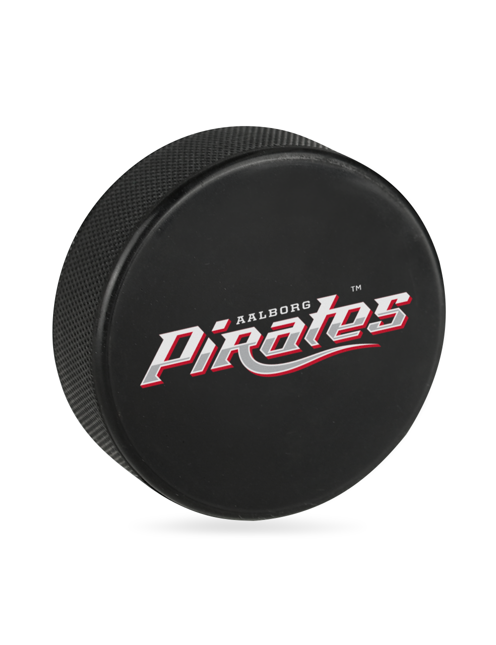 En klassisk puck med Aalborg Pirates logo. Brug den til træning, pynt på kontoret, eller værelset.