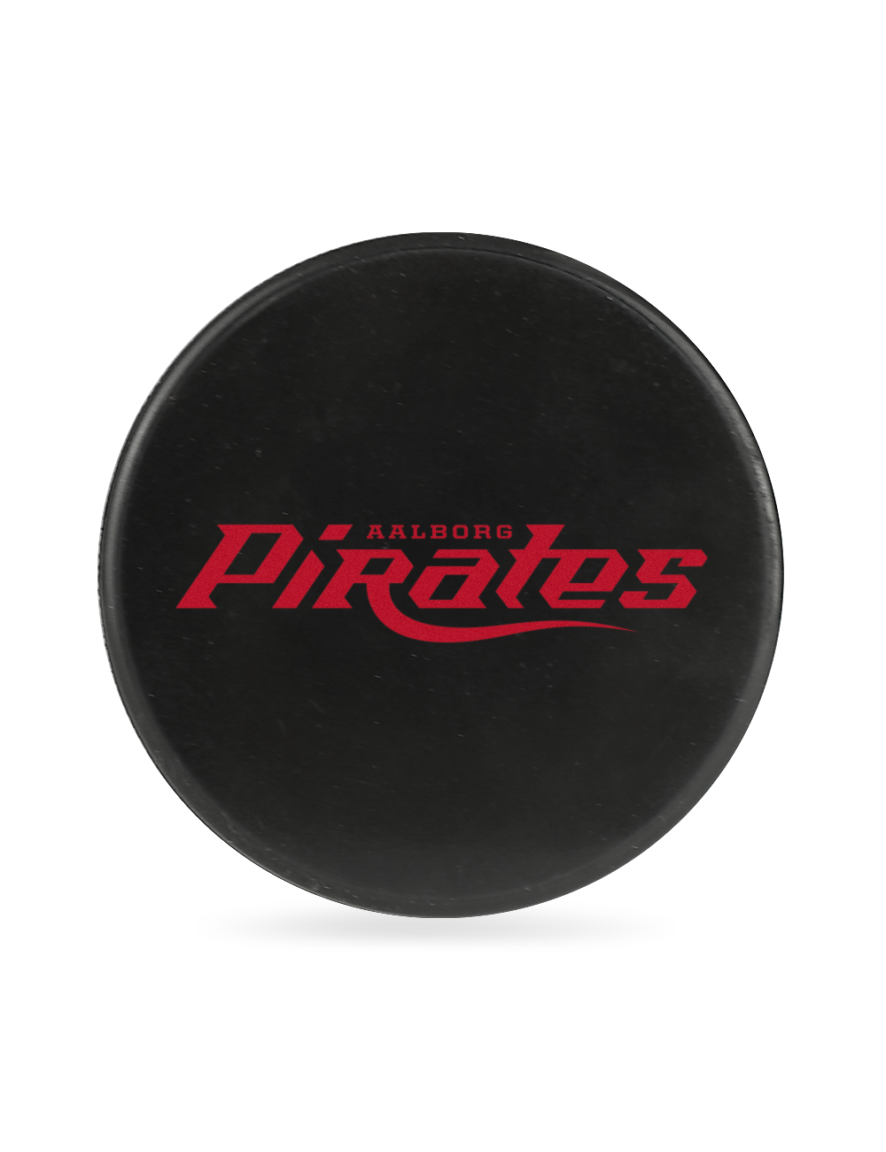 En klassisk puck med Aalborg Pirates logo. Brug den til træning, pynt på kontoret, eller værelset.