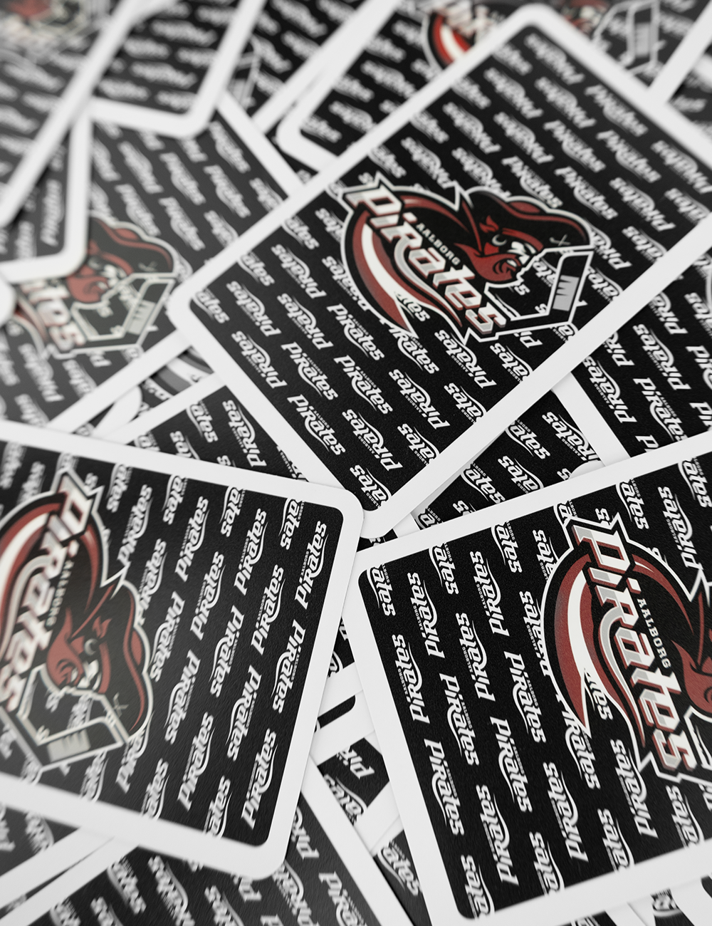 Et klassisk sæt spillekort med Aalborg Pirates logo, som er nemt at have med på farten. Med et sæt spillekort kan du spille et hav af forskellige spil, og alle kan være med.