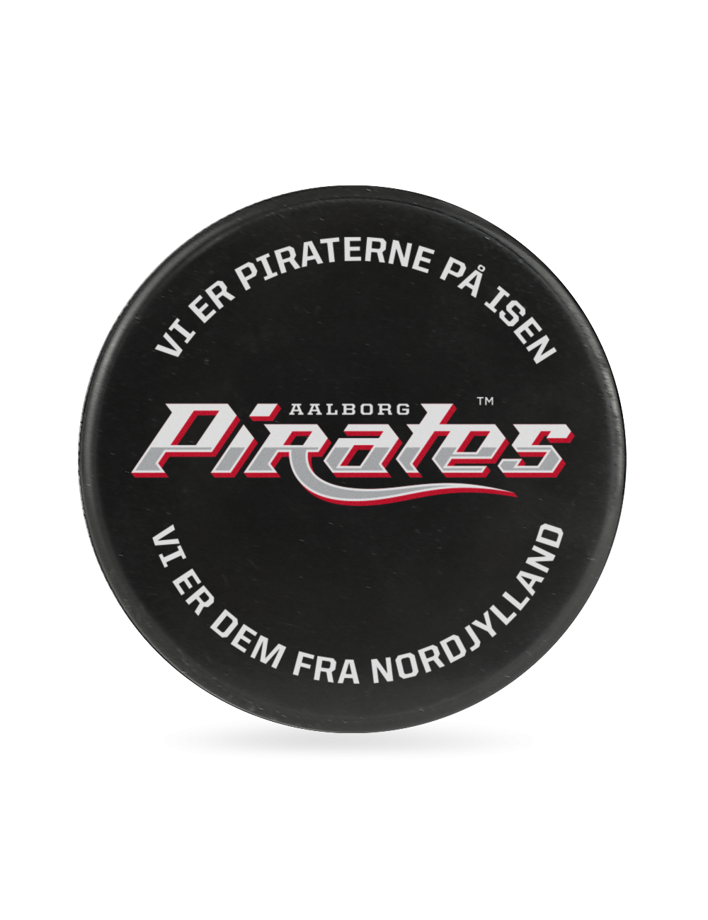"Vi er piraterne på isen - Vi er dem fra Nordjylland". Brug denne puck til træning, pynt på kontoret, eller værelset.