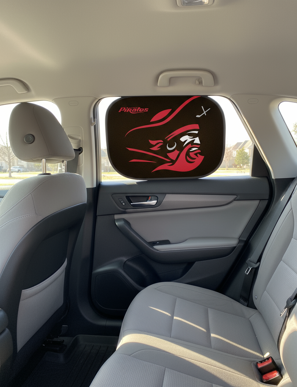 Beskyt din bils interiør mod solen med et sæt af 2 solskærme til bilvinduer med Pirates logoet på. Hver skærm leveres med sugekopper, der gør dem nemme at installere.