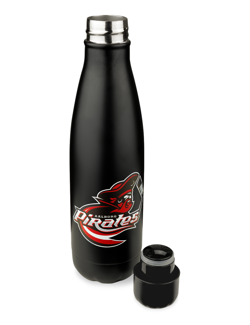Denne Pirates drikkeflaske er fremstillet i rustfri stål. Den slanke flaske passer til de fleste kopholdere. Den sørger for at holde drikkevarer varme eller kolde i flere timer, og den er derfor helt ideel til en lang biltur, udflugt eller andet. Flasken er lavet med vakuum lukning og skruelåg, som sørger for at væsken forbliver i flasken, når den er lukket.